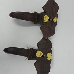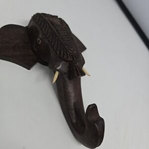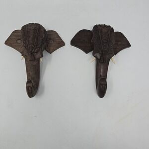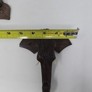VTG Hand Carved Wood Elephant Head Wall Hanging /Hooks 6"x5" Set of 2