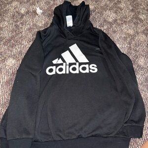 Classic black Adidas hoodie with bold logo. Ideal for everyday wear.