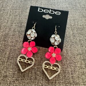 Charming pink floral earrings with heart design. Accented with sparkling stones. Perfect for a vibrant look.