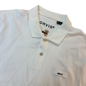 ORVIS Polo Shirt Mens XL White Cotton Fly Fishing Logo Short Sleeve Casual