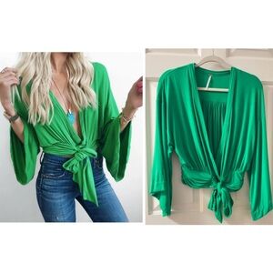 Chic black blouse with tie detail. Perfect for versatile styling.