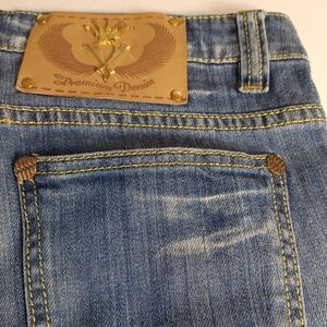 PREMIUM DENIM Jeans Straight Leg Womens Size 8 Medium Wash Button Embellishments