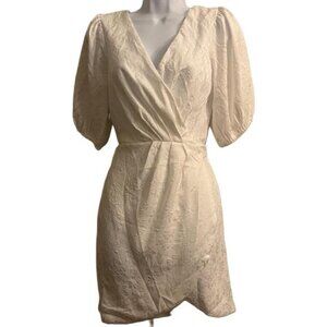 Fashion Nova Surplice To Meet You Mini Dress Cream Puff Sleeve Wrap Size S