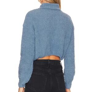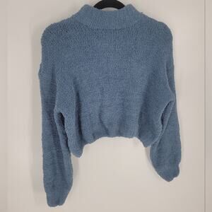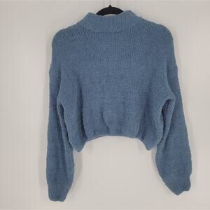 Superdown Blue Fuzzy Gia Cropped Long Sleeve Sweater S