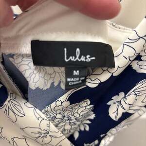 Lulus Tea Gardens Navy Blue Floral Print Satin Maxi Dress, Size Medium. This elegant satin maxi dress features a beautiful navy blue floral print, perfect for special occasions or a sophisticated casual look. The dress has a flattering silhouette and a smooth, luxurious feel. Excellent pre-owned condition, no visible flaws. Made in China.