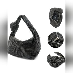 UMREN Bling Full Glitter Knotted Handbag Crystal Rhinestone Hobo Dumpling Bag