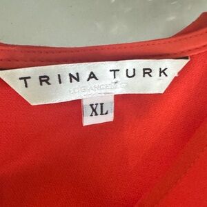 Bold red top by Trina Turk. Striking and stylish. Slightly stretchy fabric. This is a red-orange color. In excellent condition, only worn for a few hours. Please look at photos for all details and measurements. More measurements upon request. Any questions? Please leave them in the comments below and I will get back to you ASAP. I always ship within 1-2 business days. All items come from a clean, smoke, and pet free home! Thanks for looking and please ‘Bundle and Save!’ I give great discounts on all Bundles!