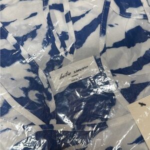 Vibrant blue and white romper tank top with artistic pattern. Ideal for casual wear.