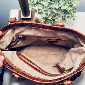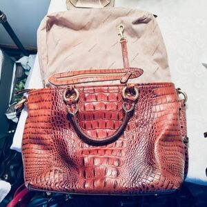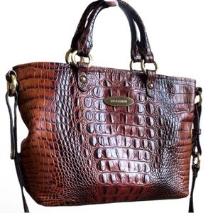 Brahmin Mini Asher Satchel Pecan Melbourne Crocodile Embossed Leather Bag