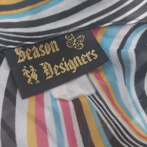 Season Designers Sheer Open Cardigan Size M/L. no shoulder pads. Long sleeve. 26 inches long and approximately 40 inch chest. no stretch. please see photos for details.