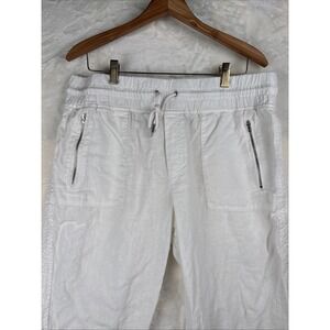Athleta Womens Cabo Linen Jogger Pants Sz 14 White Beachy Summer Casual Festival