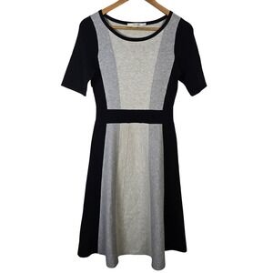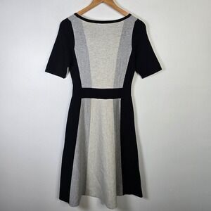 Boden Milano Colorblock Knit Fit Flare Dress Black Light Gray 4 Long Tall