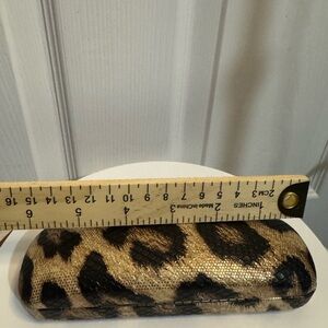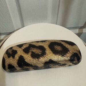 Stylish leopard print eyeglasses case perfect for any occasion. Features a bold black and tan design.
