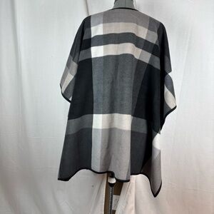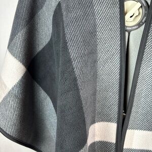 Cozy and stylish Ikebehar soft poncho in a modern neutral color-block design.