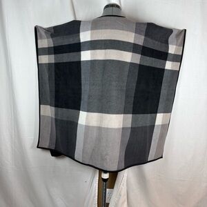 Ikebehar Soft Open-Front Poncho Wrap – Neutral Plaid Pattern – One Size