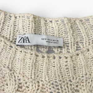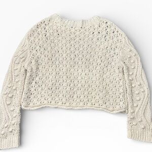 Zara Chunky Open Knit Crochet Cropped Long Sleeve Sweater Cream Size Small