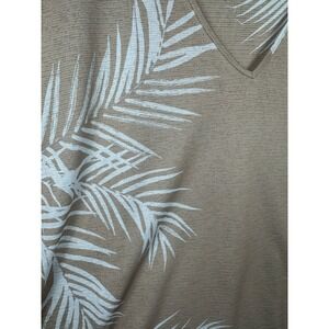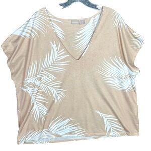Chicos Palm Leaf VNeck Dolman Sleeve Top Tunic Beige Size XL Resort Tropical