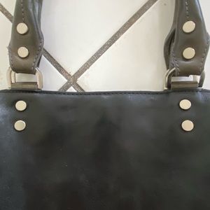 Elegant black tote with metallic accents. Sturdy handles. Ideal for daily use.