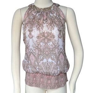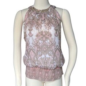 Cache Pink And Gold Paisley Blouson Style Halter Top Size Medium
