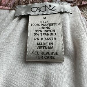 Cache Pink And Gold Paisley Blouson Style Halter Top Size Medium. Excellent pre-loved condition. This pull over top has two gold button closure at halter neck. The always flattering cut-in neckline forms an airy keyhole detail in back. This bohemian blouson style blouse decorated with gold beads a bold paisley pattern will glam-ify your going-out look. With an easy fit, the banded blouson design offers complete comfort for a look that flatters. Pairs easily with any bottoms you choose!