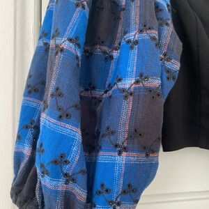 Really cool shirt new with tags. Snap buttons and big fun sleeves with floral embroidery details on them.