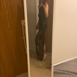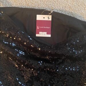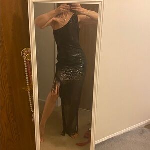 NWT lush Boutique size small sequin fringe one shoulder dress lined to mid thigh. Total length with fringe included down one side is 59 inches other shorter side is 40 inches. 17 inches pit to pit lying flat 14.5 inch waistline lying flat. Perfect dancing dress!! I also have a medium and an extra large too