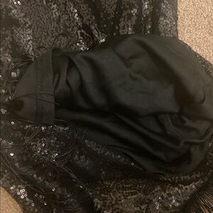 Lush Boutique NWT size small sequin on shoulder fringe hi /low dress