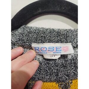 Keywords: ROSE sweater, acrylic knit, animal print, geometric pattern, heart print, vintage sweater, novelty knit, cozy, winter fashion, statement piece, unique design, festive, casual wear