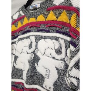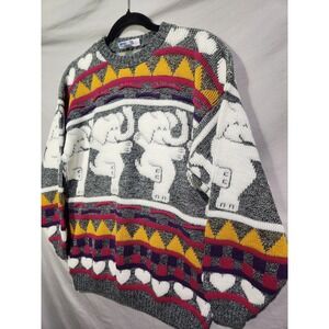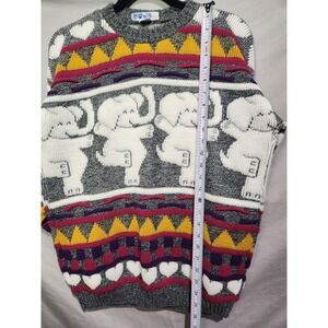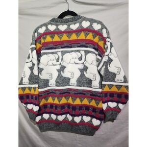 80's ROSE Acrylic Dancing Elephants & Hearts Chunky Knit Acrylic Sweater Medium
