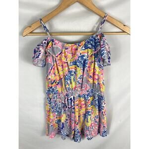 Lilly Pulitzer Girls Emoni Romper in Lilac Verbena Ruffle Size L 8-10