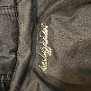 BABY PHAT GIRL'S BLACK/ PURPLE PUFFER . MISSING FAUX FUR LINING ON HOOD. SIZE L