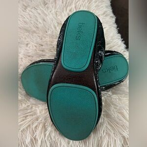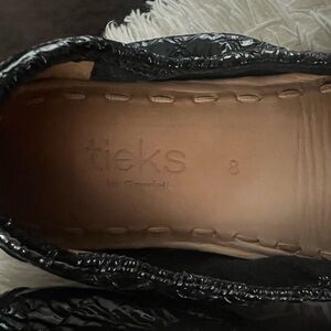 TIEKS Obsidian Black Embossed Crocodile Ballet Flat Shoes Size 8