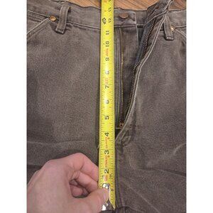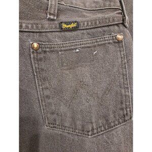 Vintage Wrangler brown denim jeans with a classic straight-leg fit and zip fly closure. Made from durable cotton denim with authentic vintage fading and wear throughout, giving them a broken-in workwear look.