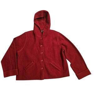 Vintage HERMAN GEIST XL Red Boiled Wool With Hood Button Down Jacket Warm