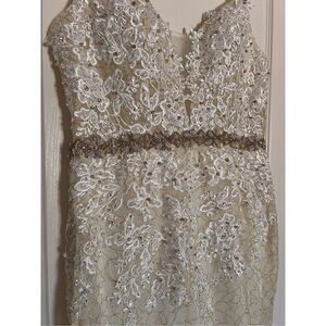 Photo is to show the style, the dress is more cream/butter yellow in real life