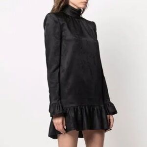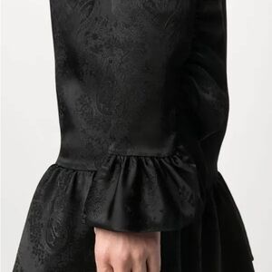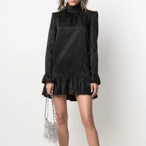 Saint Laurent black jacquard long sleeve ruffle mini dress - 6 / Small (38)