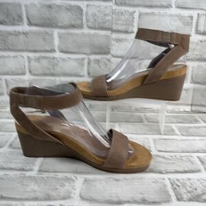 Lucky Brand Kanoa Women's Size 8.5 Tan Leather Wedge Ankle Strap Sandal