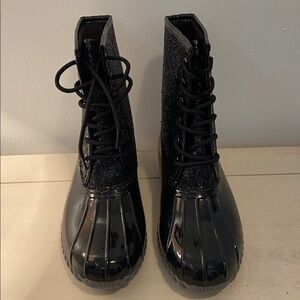 Comfort Est. 1946 Black Patent Glitter Lace-Up Boots Streetwear Y2K New