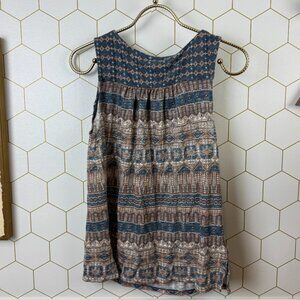 Lucky Brand Boho Blue Geometric Sleeveless Tie-Front Top - Size - XS