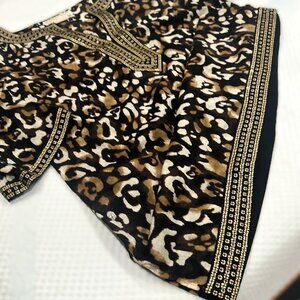 Michael Kors Leopard Print Tunic Blouse Medium Embellished Neckline