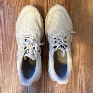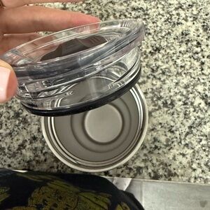 Durable YETI tumbler in seafoam green. Includes a convenient handle and stainless steel trim. Tiny blemish on the side, picture included. 20 oz.