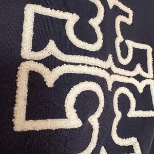 This is a Tory Burch Terry Logo Crewneck sweatshirt in Tory Navy blue with a chenille logo.