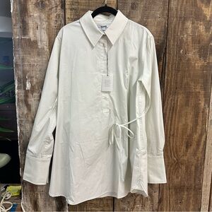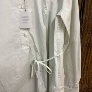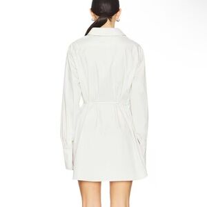 EAVES Bibas Mini Shirt Dress Chalk Cream Button-Up Shirt poplin tie Revolve XS