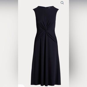 Lauren Ralph Lauren navy blue twist-front jersey midi dress. NWT Size 14