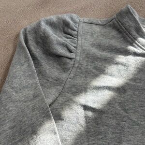 Stylish gray long sleeve Henley shirt with button details. Perfect for casual wear. Adorable puff sleeve gives it a feminine touch. 70% cotton and 30% polyester. 22 inches from armpit to armpit and 24 inches from shoulder to hem.