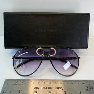 Authentic Dior Homme designer sunglasses from the iconic Black Tie collection. Classic aviator-style frame in black with purple gradient lenses, offering a timeless, masculine look associated with Dior Homme tailoring and eyewear design.