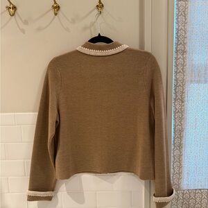 Sezane. Betty Cardigan. Camel with cream crochet detail. Small.
