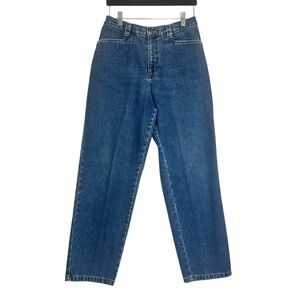 Vintage 90’s Lee medium wash trouser jeans. The jeans sit at the natural waist and are relaxed through the hip. The legs are straight. They have trouser style front and back pockets.