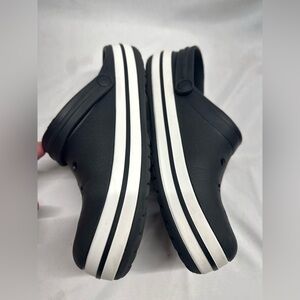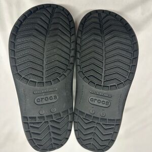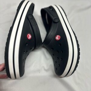 Crocs Crocband Black clogs Sz: M:7/W:9 Lightweight Comfort Minimalist Slip on shoe. Great used condition. Light normal wear. Excellent used condition. Light normal wear. No rips or stains. Fully molded with Croslite foam, offering lightweight, 360-degree comfort. rugged lug outsoles with enhanced tread for increased traction and support. Ventilation ports enhance breathability, and the clogs are customizable with Jibbitz charms.