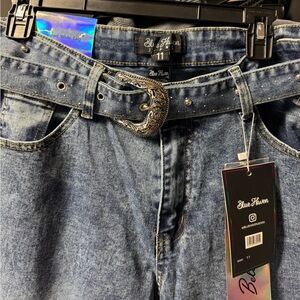 Blue Haven Bela light-wash straight-leg jeans with a studded belt. NWT